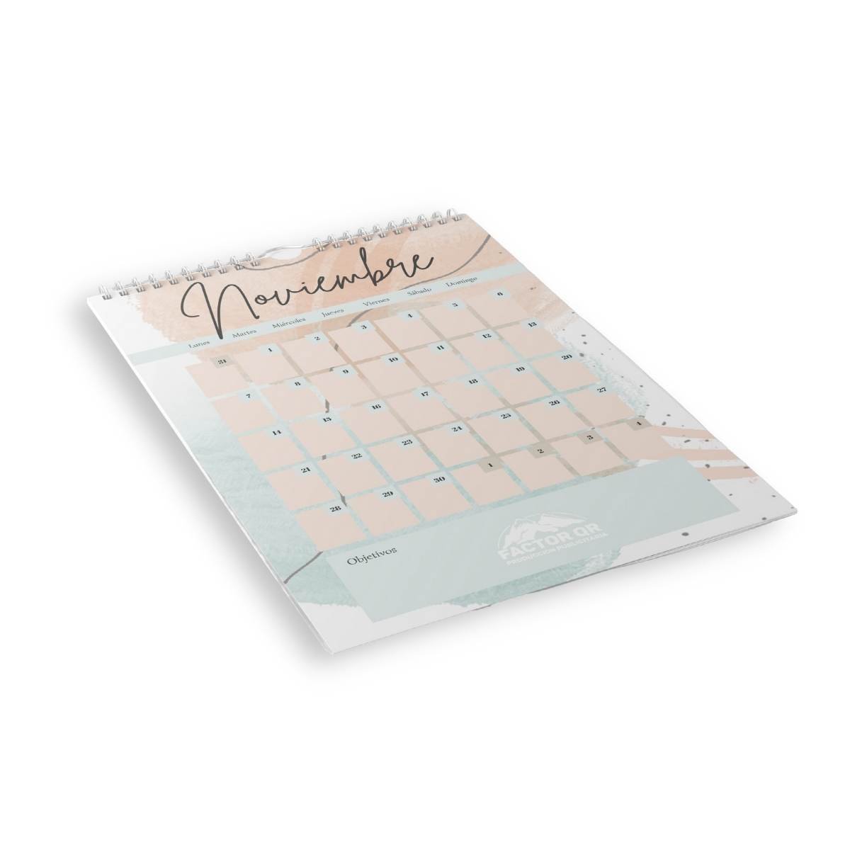 Un diseño elegante con argollado para colgar, ideal para planificar cada mes y promocionar tus productos o servicios todo el año. Solicita tu cotización ahora.